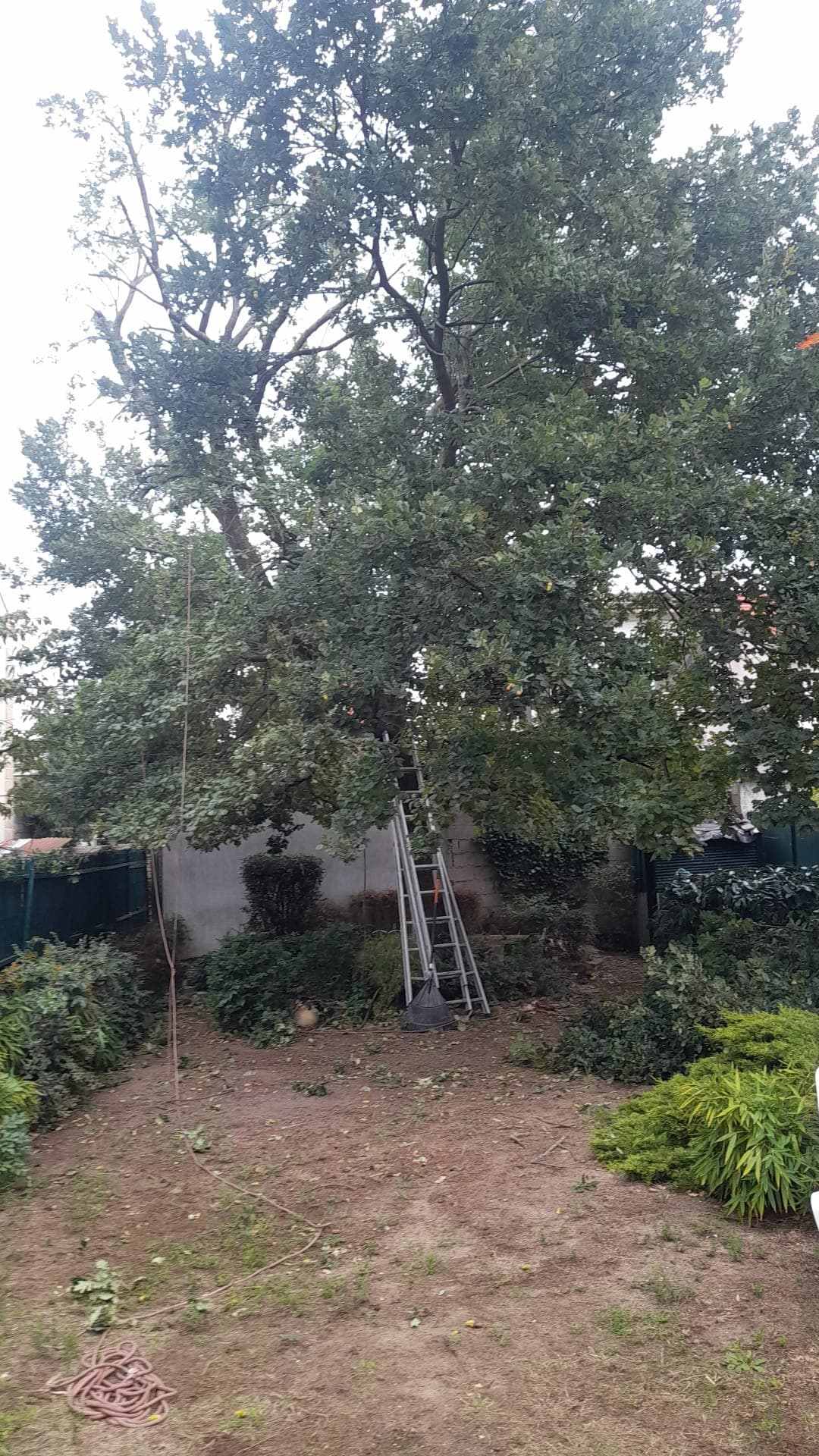 Dans le jardin de ce particulier, nous avons effectué une mise en sécurité des biens et personnes puis procédé à l'élagage de ce chêne.